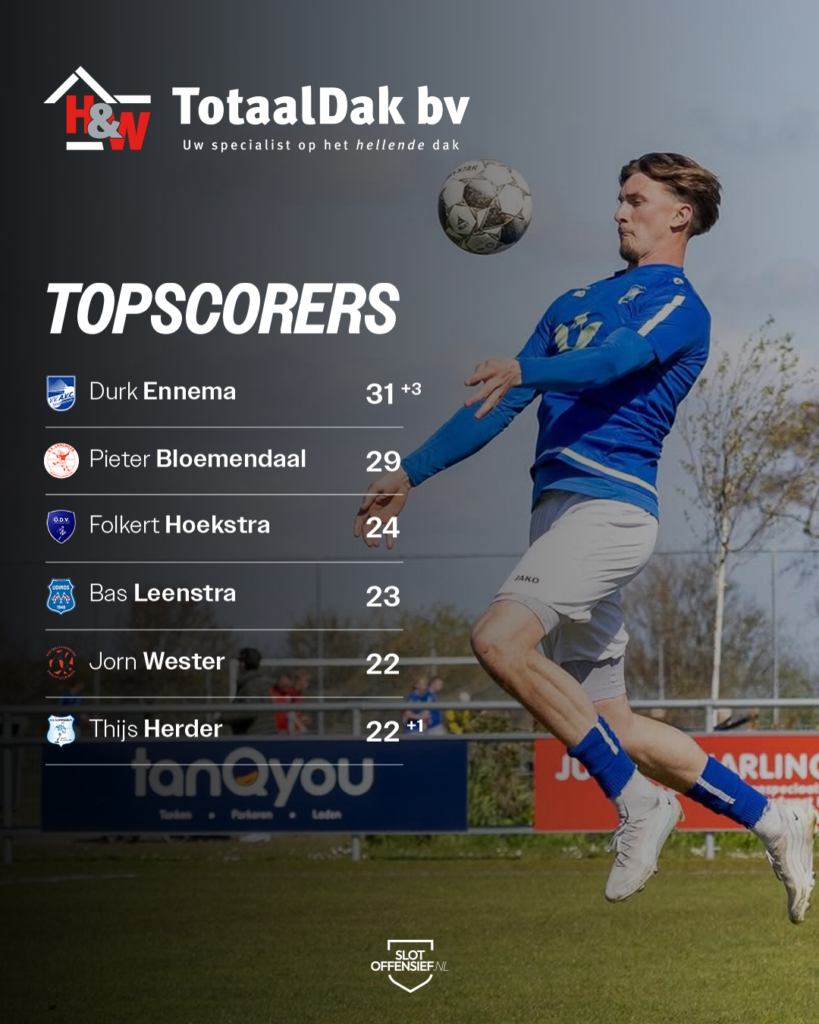 Opstelling: Reinier Smit; Sander Hoomoedt (Michel Oud, 46), Pieter Kiewiet, Theo Molenaar, Kayan Kiewiet; Christian Smid, Sander Graafsma (Robin Sirob, 80), Jordi Metz (Rutger Beverwijk, 80); Bente Bonthuis, Lars Molenaar (Paul Oud, 63), Tim Barf (Brent Barf, 63).